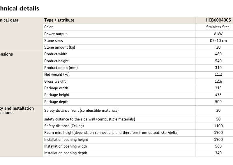 Η σειρά καλύπτει χωρητικότητα σαουνών με όγκο: 3–12 m³